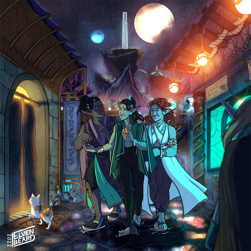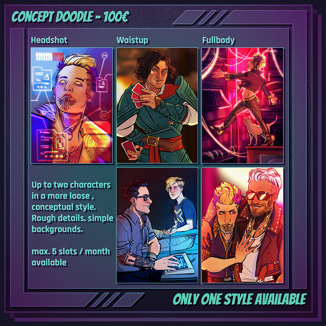 Born in 1993 and living in Germany, drawing, writing, and crafting from the moment he could hold a pen. Lover of cats and video games, avid fan of anything fantasy, sci-fi, and cyberpunk. Illustrator, concept artist, writer, graphics designer, (virtual) photographer, cosplayer, and much more. There's always something new to create!